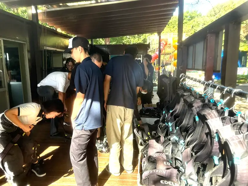 今回実際に体験してみて感じたのは、安全対策がとても丁寧だということ。レクチャーでの説明や器具のチェック、スタッフの巡回など、細かい部分まで気を配っているのが伝わってきました。「ちょっと怖いかも…」と思う場面もありましたが、常に命綱が確保されているので安心感があります。小学生くらいのお子さんも挑戦していて、親子で楽しめるのがいいなと思いました。