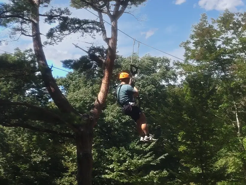途中で一番印象に残ったのが、空中に張られたロープの上を一歩ずつ渡っていくエリア。下を見下ろすと森の地面が遠く、思わず足がすくみますが、「落ちても安全器具がある」とわかっているので勇気を出して前へ。無事渡りきった時の達成感は、まさに冒険をやり遂げた喜びそのものです。