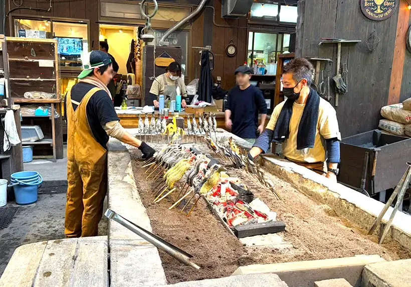 那須フィッシュランドの大きな魅力は、 釣った魚をその場で調理して食べられること。釣りたての魚をスタッフにお願いすると、手際よく下処理をしてくれて、調理方法も選べます。定番の塩焼きはもちろん、唐揚げやフライなどバリエーション豊富。