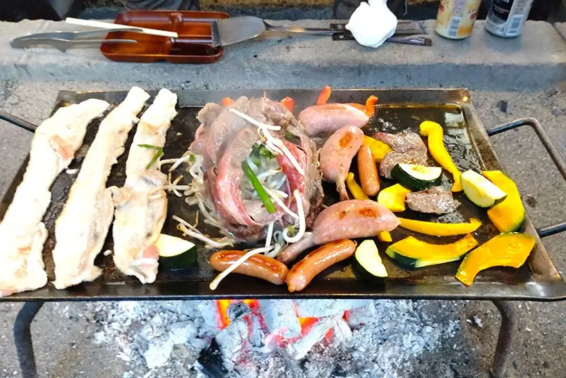 釣った魚を味わうだけでなく、那須フィッシュランドにはバーベキューができるスペースも用意されています。炭火を囲んでワイワイと食事を楽しめるのはアウトドア好きにはたまりません。数種類のBBQセットメニューから選ぶことができ、炭・タレ・鉄板等道具一式を用意してくれるので、手ぶらでも楽しむことができますよ。