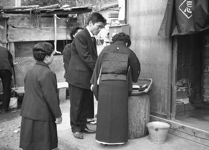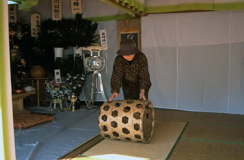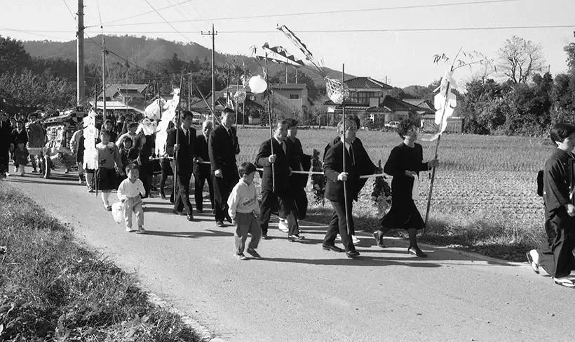 「今日、葬式は葬祭業者が仕切ってくれる。しかし、昭和の終わり頃までは、葬式組などと呼ぶ近隣の人々からなる相互扶助で執り行われた。人が亡くなると施主は地域の代表(総代や班長)に連絡し、そこから葬式組に連絡が回る。連絡を受けると、すぐさま施主の家に集まり、葬式の日取りや役割を決めた。これには、葬式の采配をする帳場、亡くなったことを親類縁者に知らせるヒキャク、墓穴を掘るトコバンなどがある。そして、龍頭や花籠、枕飯、枕団子、死に装束など葬具類を準備した。